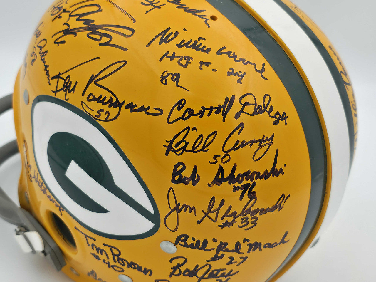 - Autographs (32): Bart Starr, Jim Taylor, Paul Hornung, Willie Wood, Jerry Kramer, Dave Robinson, Willie Davis, Forrest Gregg, Herb Adderley, Fuzzy Thurston, Boyd Dowler, Zeke Bratkowski, Steve Wright, Donny Anderson, Jim Weatherwax, Phil Vandersee, Gabe Gillingham, Don Chandler, Ken Bowman, Bill Curry, Carroll Dale, Bob Skoronski, Jim Grabowski, Bill Mack, Bob Jeter, Bob Long, Doug Hart, Tim Brown, Marv Fleming, Bill Anderson, Dave Hathcock, Allen Brown