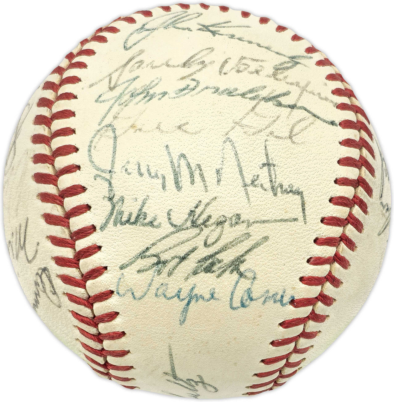 This is an Official Cronin AL Baseball that has been hand signed by members of the 1969 Seattle Pilots Team. Signatures include Ron Plaza, Dooley Womack, Steve Barber, Ron Clark, Diego Segui, Steve Hovley, Sibby Sisti, Miguel Fuentes, Danny Walton, John Kennedy, Sandy Valdespino, John Donaldson, Gus Gil, Jerry McNertney, Mike Hegan, Wayne Comer, Bob Locker, Bob Meyer, Gene Brabender, Greg Goossen, Don Mincher and five others. Clubhouse signature: Joe Schultz. There is toning in the item as shown. This item has been certified authentic by Beckett Authentication (BAS) and comes with their tamper-proof hologram and matching full-page certificate of authenticity.
