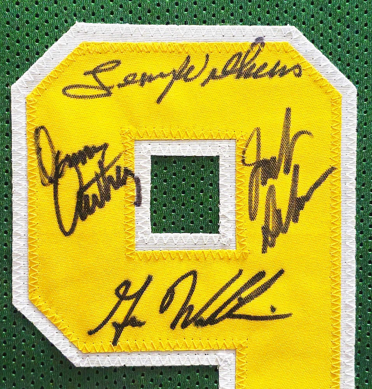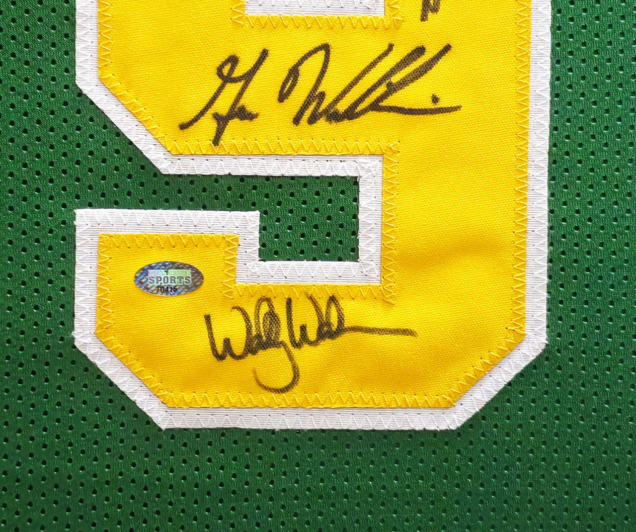 Celebrate a historic championship season with this 1978-79 NBA Champions Seattle SuperSonics Multi-Signed Framed Green Jersey, featuring 9 autographs from key players and coaches of the franchise’s only NBA title team. The 1978-79 SuperSonics, led by Coach Lenny Wilkens, defeated the Washington Bullets to secure the first and only championship in Seattle basketball history. This custom green jersey has been hand-signed by 9 team members and comes professionally framed at approximately 31x36 inches, authenticated by Mill Creek Sports with their tamper-proof hologram and certificate of authenticity.