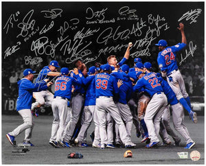 2016 Chicago Cubs Team Signed 16x20 World Series Celebration Photo (25 Sigs + Inscriptions) – Schwartz COA
