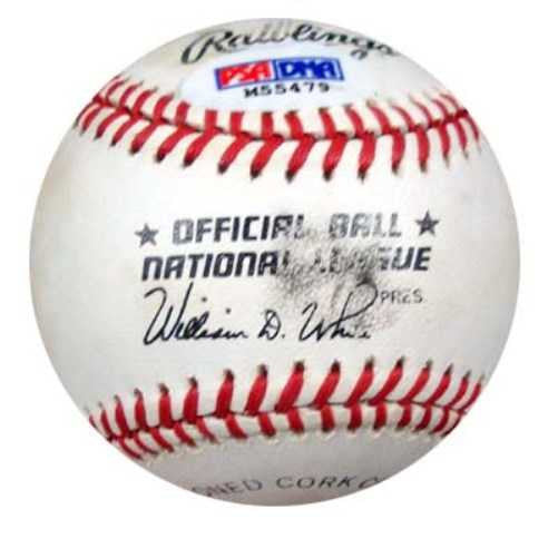 This is an Official National League Baseball that has been hand signed by Al Barlick. The autograph has been authenticated by PSA/DNA. It comes with their hologram sticker and matching certificate.