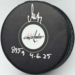 Alex Ovechkin “895G 4.6.25” Autographed Washington Capitals Logo Hockey Puck – Fanatics Holo