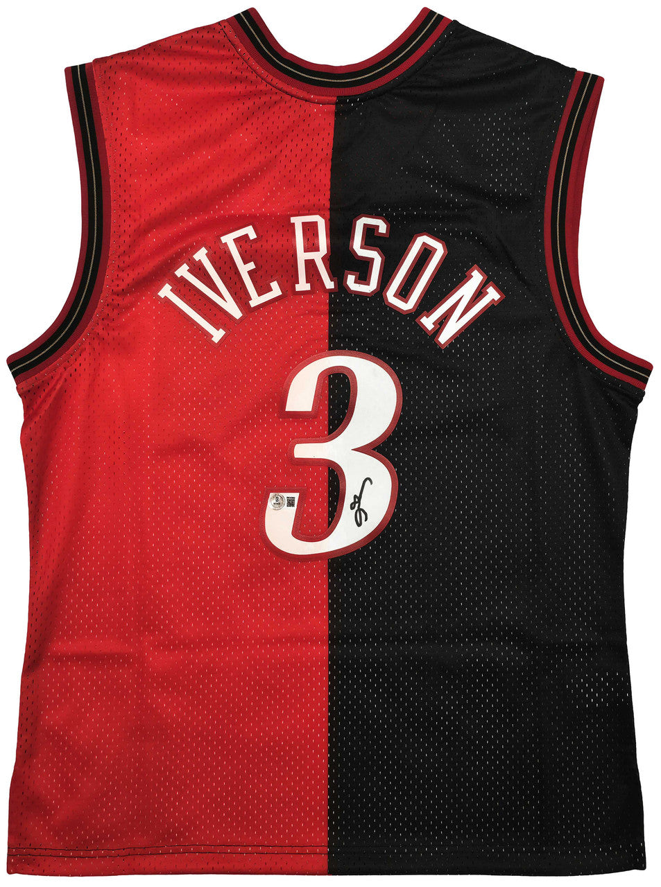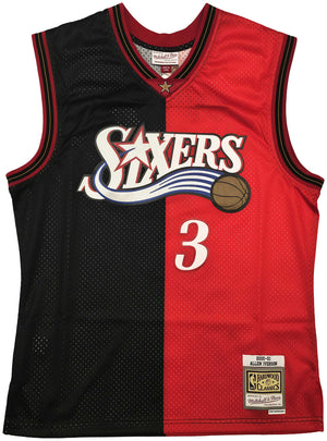 Celebrate Allen Iverson’s MVP season with this Allen Iverson Autographed Philadelphia 76ers Black & Red Authentic Mitchell & Ness 2000-01 Hardwood Classics Swingman Split Jersey. Featuring a unique split color design, this Size L jersey is hand-signed by Iverson and comes certified authentic by Beckett BAS Witness, making it a standout collectible for Sixers fans and NBA memorabilia collectors.