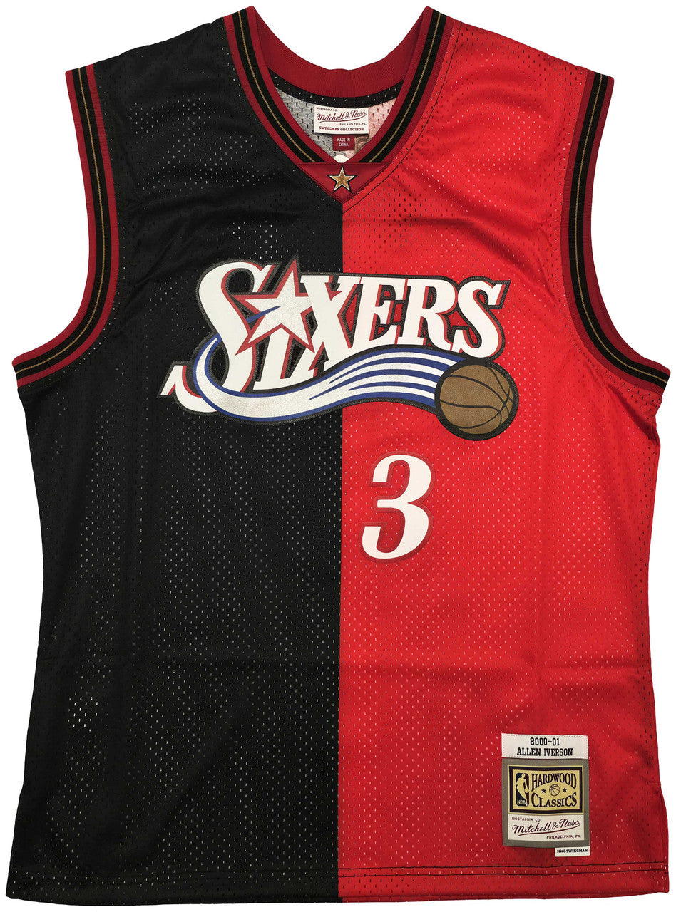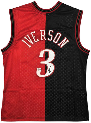Allen Iverson Autographed 76ers Black & Red Split Mitchell & Ness 2000-01 Swingman Jersey – Size L – Beckett BAS Witness