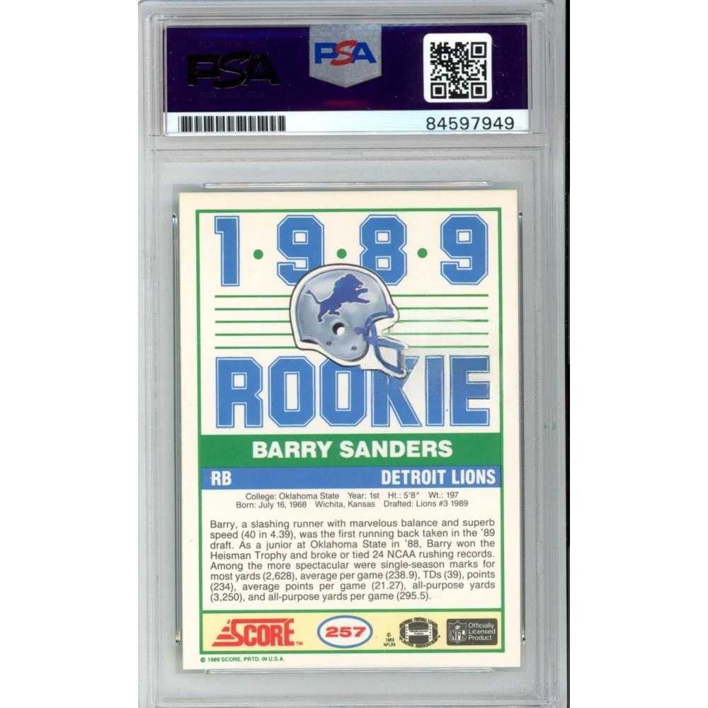 Barry Sanders 1989 Score Football Autograph “Lion King” Rookie Card #257 (PSA/DNA 10)