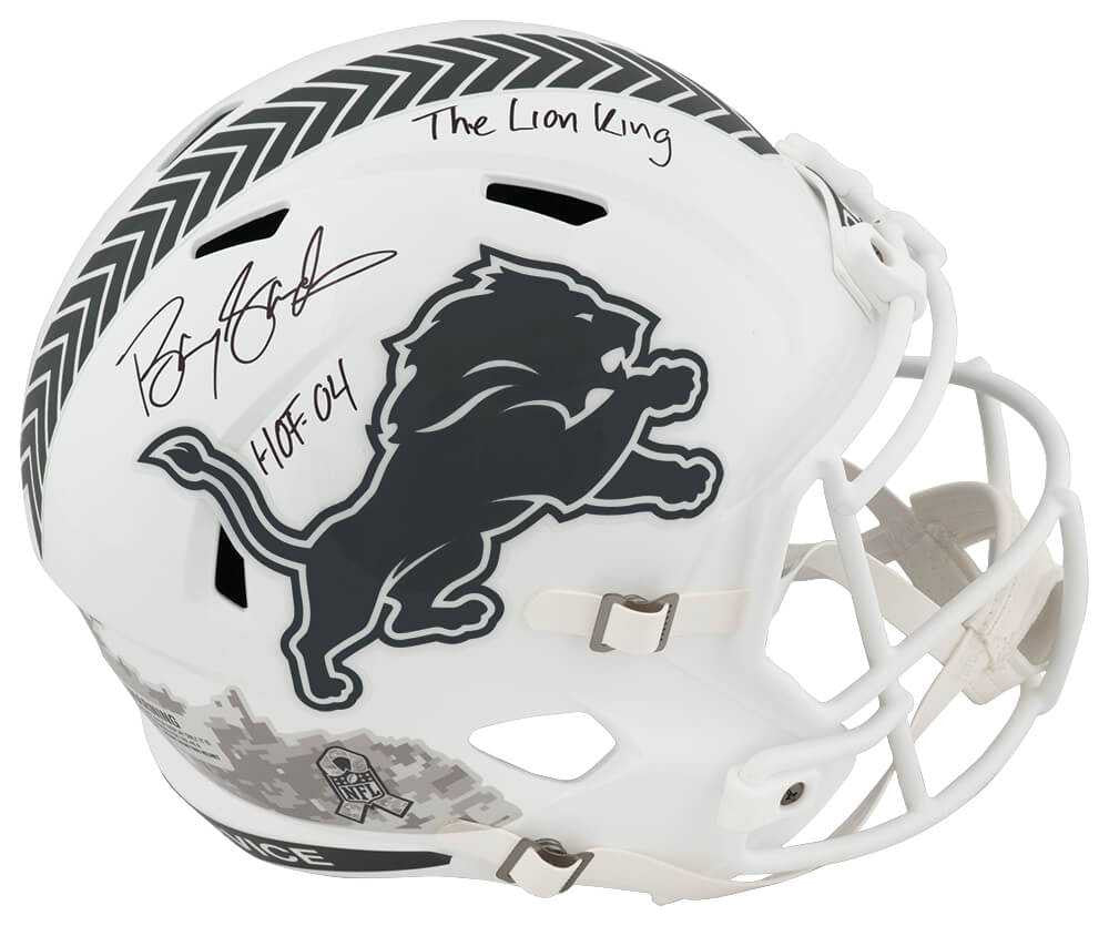 Barry Sanders Autographed Detroit Lions Salute 2024 White Full-Size Speed Replica Helmet – HOF ’04, “The Lion King” – Schwartz Auth