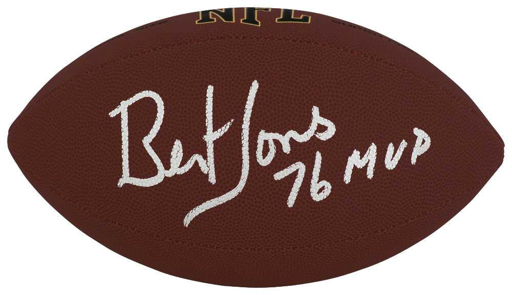 Bert Jones signed Wilson Super Grip full size NFL football with '76 MVP' inscription. Item comes with a Schwartz Sports Memorabilia tamper-proof numbered hologram and Certificate of Authenticity which can be verified online.