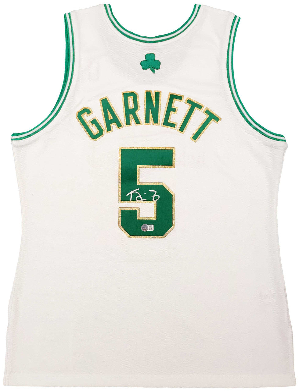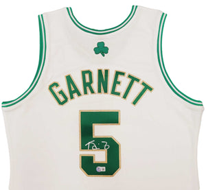 This is a White & Gold Authentic Mitchell & Ness Boston Celtics Hardwood Classics 2008 Jersey that has been hand signed by Kevin Garnett. This jersey is Size L. This item has been certified authentic by Beckett Authentication (BAS) and comes with their tamper-proof QR Code sticker that can be verified on the Beckett-authentication.com.