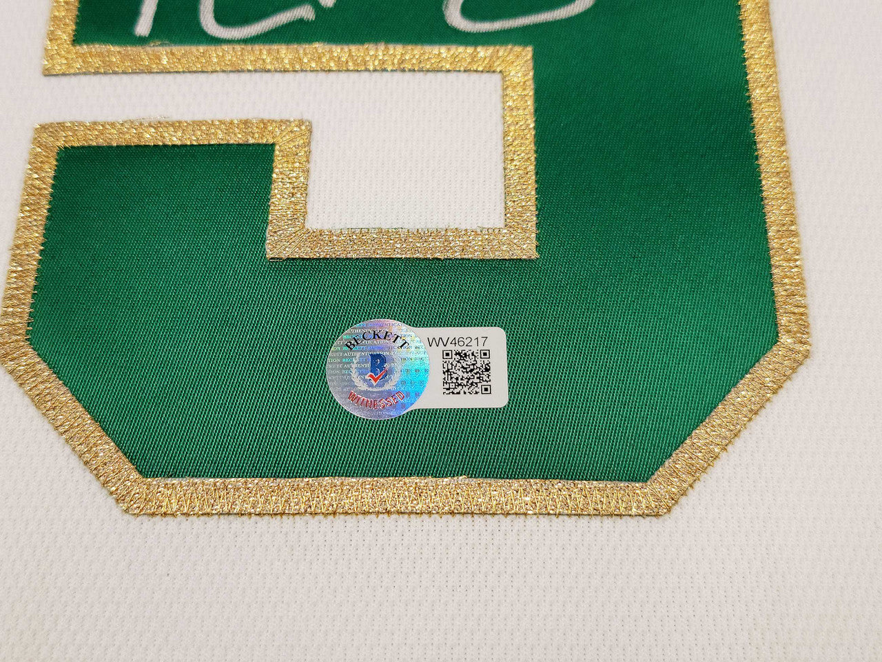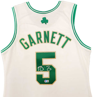 This is a White & Gold Authentic Mitchell & Ness Boston Celtics Hardwood Classics 2008 Jersey that has been hand signed by Kevin Garnett. This jersey is Size M. This item has been certified authentic by Beckett Authentication (BAS) and comes with their tamper-proof QR Code sticker that can be verified on the Beckett-authentication.com.