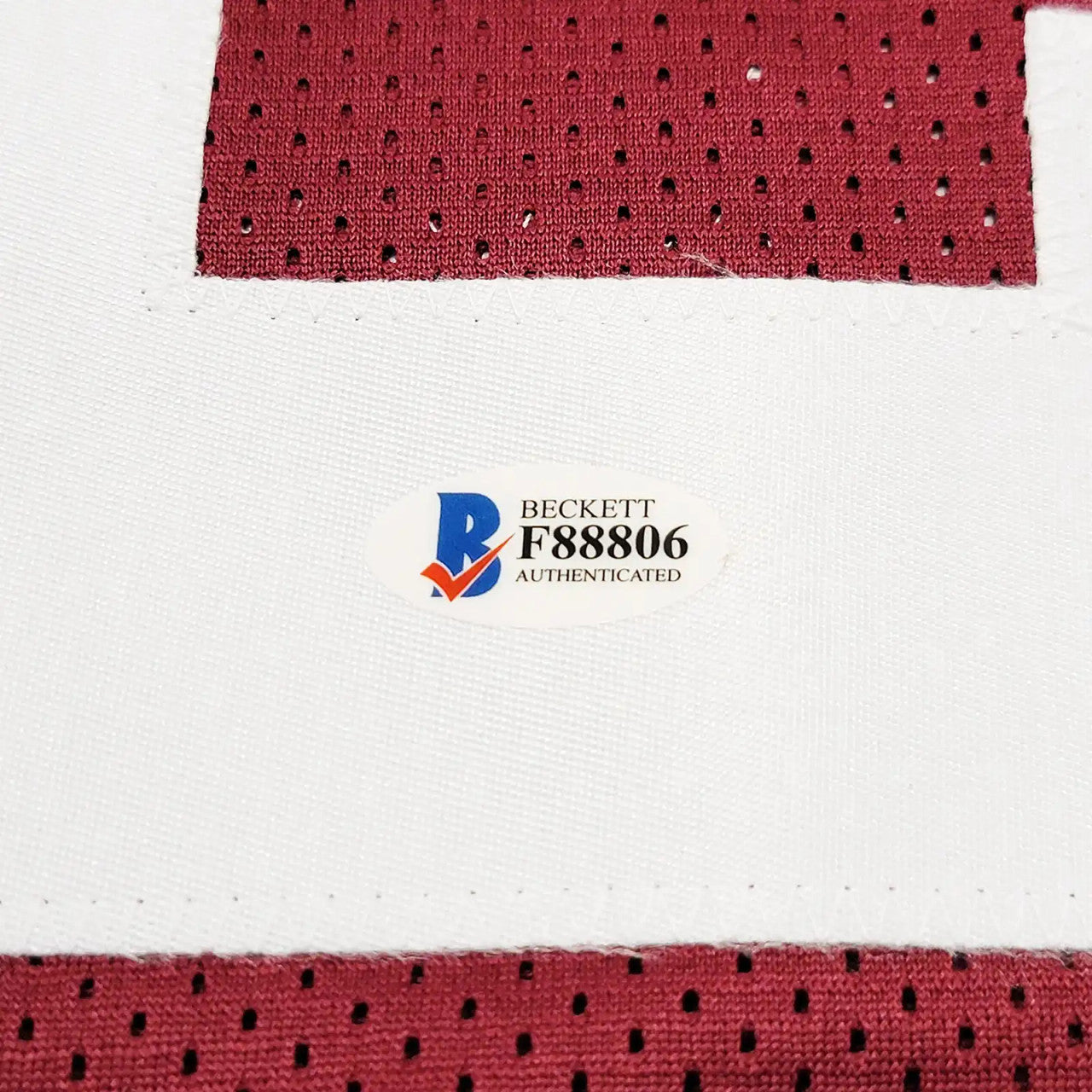 This premium Custom Boston College Red Jersey has been hand-signed by Doug Flutie with a bold, clean autograph. The signature is authenticated under the Beckett Authentication Services (BAS) Witness Program, meaning a Beckett representative personally witnessed the signing. A tamper-proof BAS Witness hologram is included for lifetime verification.