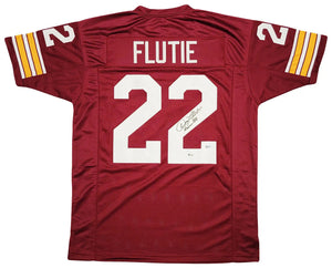 Celebrate one of the most iconic players in college football history with this Doug Flutie Autographed Custom Boston College Eagles Red Jersey. Flutie’s legendary career—including his unforgettable 1984 Heisman Trophy season and the historic “Hail Flutie” pass—makes him a fan favorite and one of the most collectible quarterbacks of the modern era.