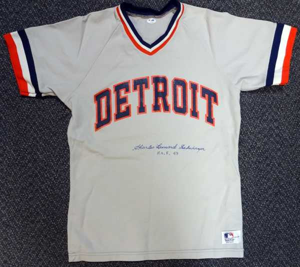 This is a Sand Knit Detroit Tigers Jersey that has been hand signed by Charlie Gehringer. It has been certified authentic by PSA/DNA and comes with their sticker and matching full page certificate of authenticity. The jersey is a size M.