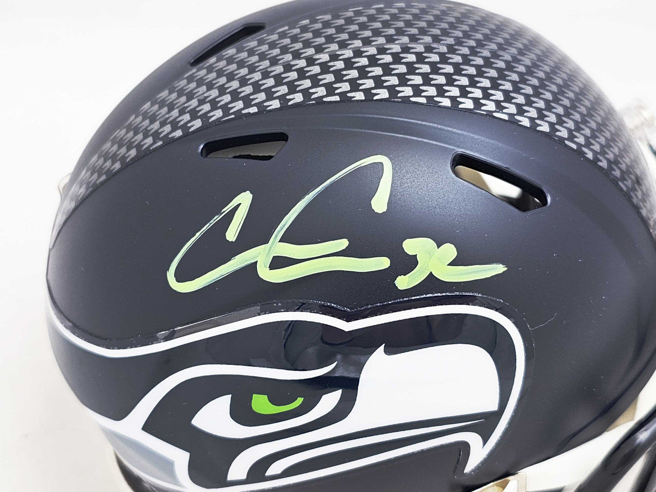 Own a premium mini helmet with this Chris Carson Autographed Seattle Seahawks Blue Speed Mini Helmet Fanatics Holo Stock #216813. Authenticated by Fanatics for guaranteed legitimacy.