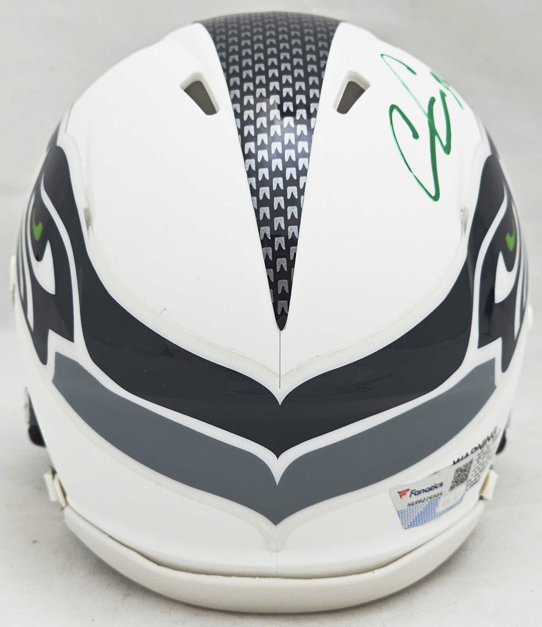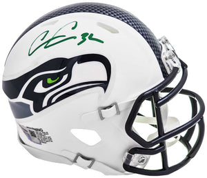Own a premium mini helmet with this Chris Carson Autographed Seattle Seahawks Flat Matte White Speed Mini Helmet Fanatics Holo Stock #216811. Authenticated by Fanatics for guaranteed legitimacy.