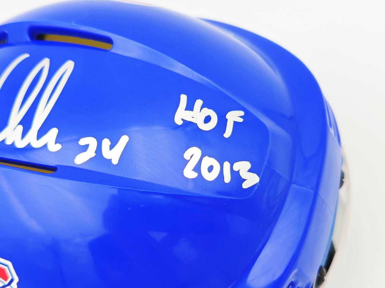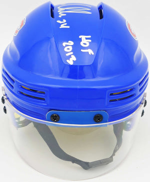 This is a Montreal Canadiens Blue Mini Helmet that has been hand signed by Chris Chelios. This item was inscribed "HOF 2013." This item has been witnessed and certified authentic by Beckett Authentication (BAS) and comes with their tamper-proof witness sticker.