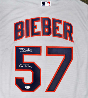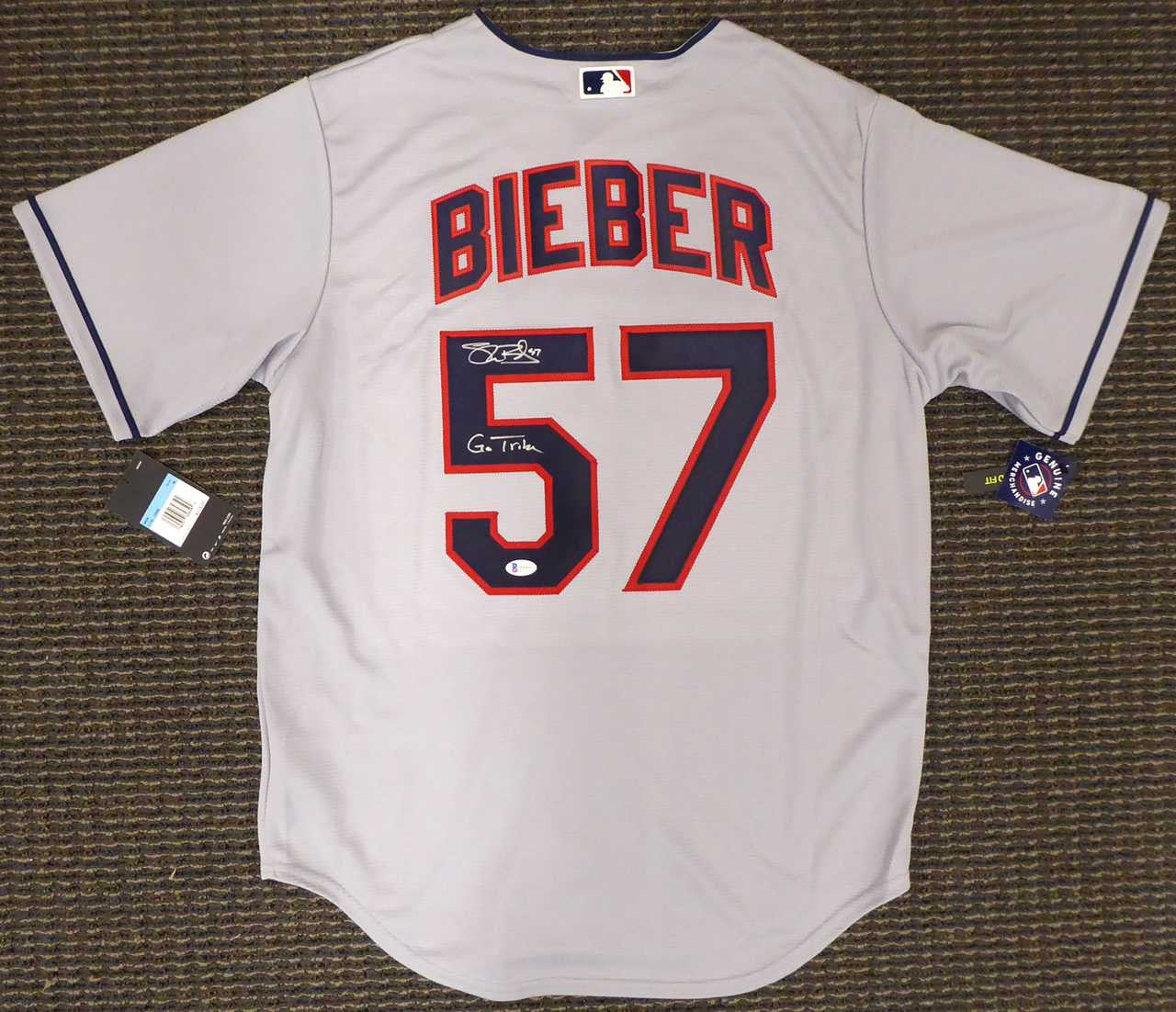 Cleveland Indians Shane Bieber Autographed Gray Nike Jersey Size M "Go Tribe" Beckett BAS
