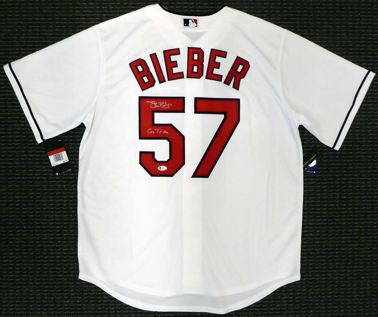 Cleveland Indians Shane Bieber Autographed White Nike Jersey Size L "Go Tribe" Beckett BAS
