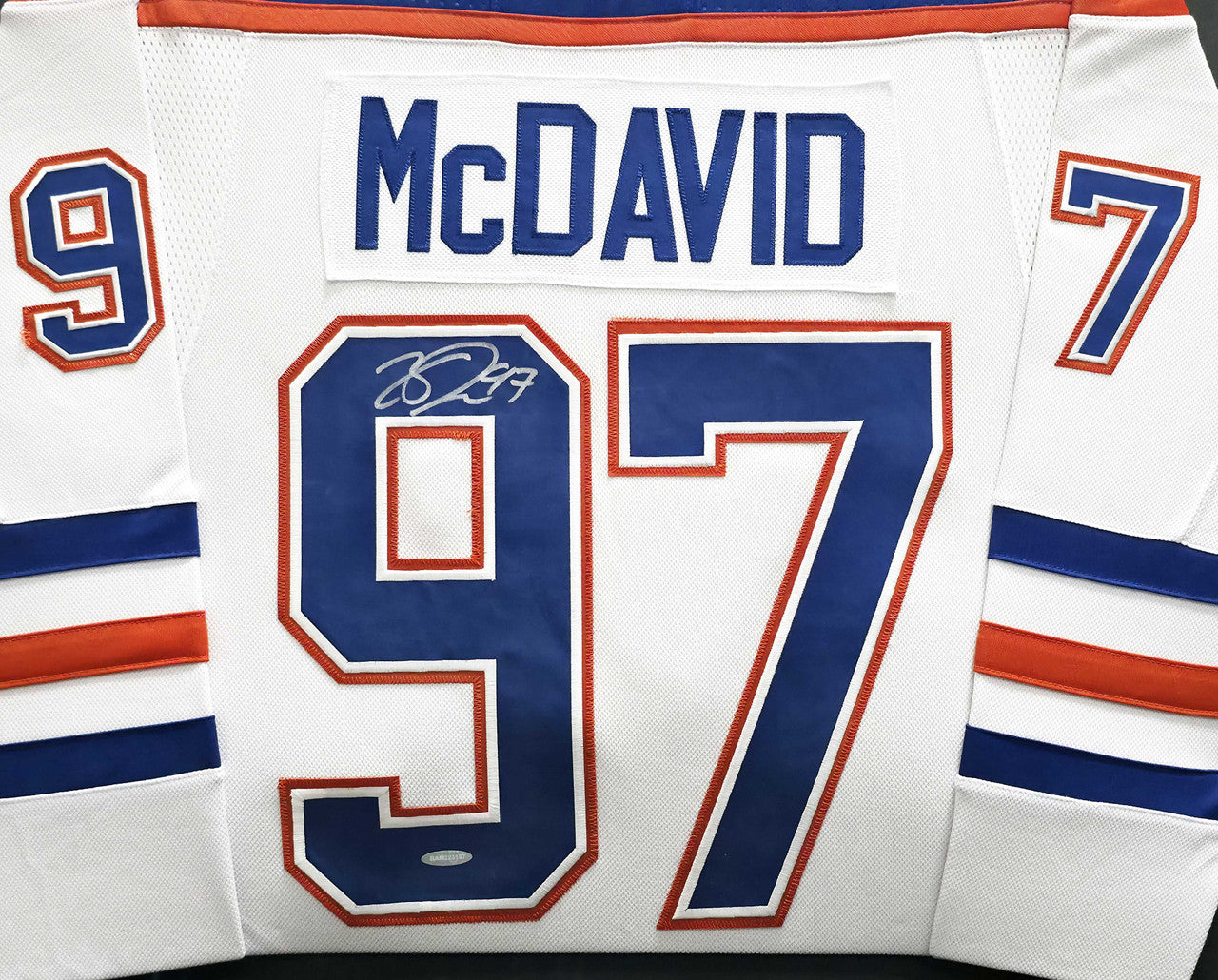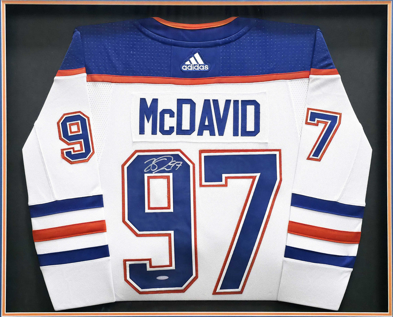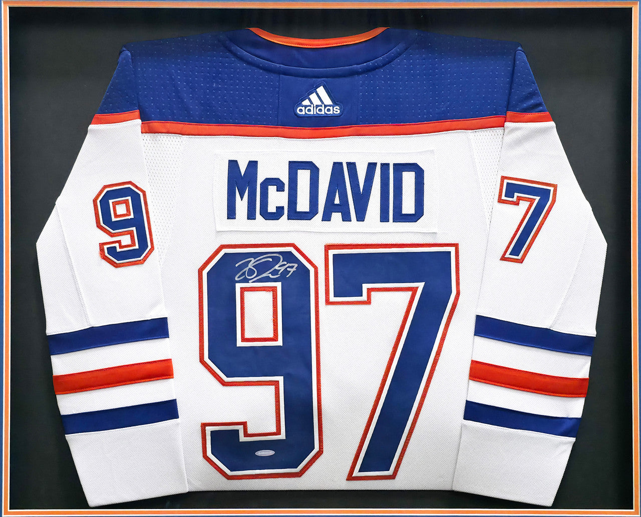 Connor McDavid Signed Framed Oilers White Adidas Jersey – UDA COA
