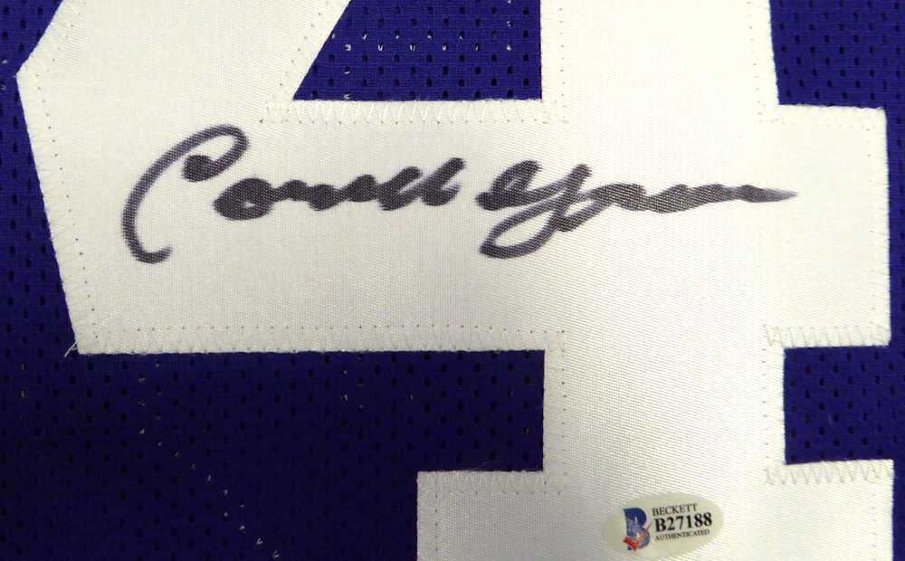 This custom blue Dallas football jersey has been hand-signed by Cornell Green. The autograph has been authenticated by Beckett Authentication Services (BAS) and includes their tamper-proof numbered sticker and matching Certificate of Authenticity (COA) for lifetime verification. This jersey is a custom design with stitched name and numbers and is approximately size XL (no manufacturer logos or branding).