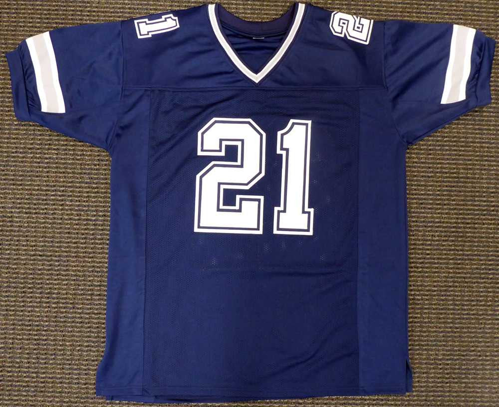 - Custom blue Dallas Cowboys jersey with sewn-on name & numbers
