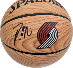 This rare Official Spalding NBA basketball features the special wood-grain Portland Trail Blazers logo panel, giving it a premium, display-ready aesthetic. Lillard’s autograph contrasts beautifully against the wood logo design, making it a standout centerpiece in any basketball memorabilia collection.