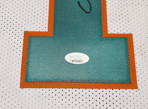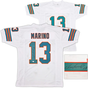 This crisp White Custom Dolphins Jersey has been hand-signed by Dan Marino with a bold and clean autograph. The signature is authenticated by JSA (James Spence Authentication), one of the most trusted names in the memorabilia industry. A tamper-proof JSA COA accompanies the jersey for lifetime verification.