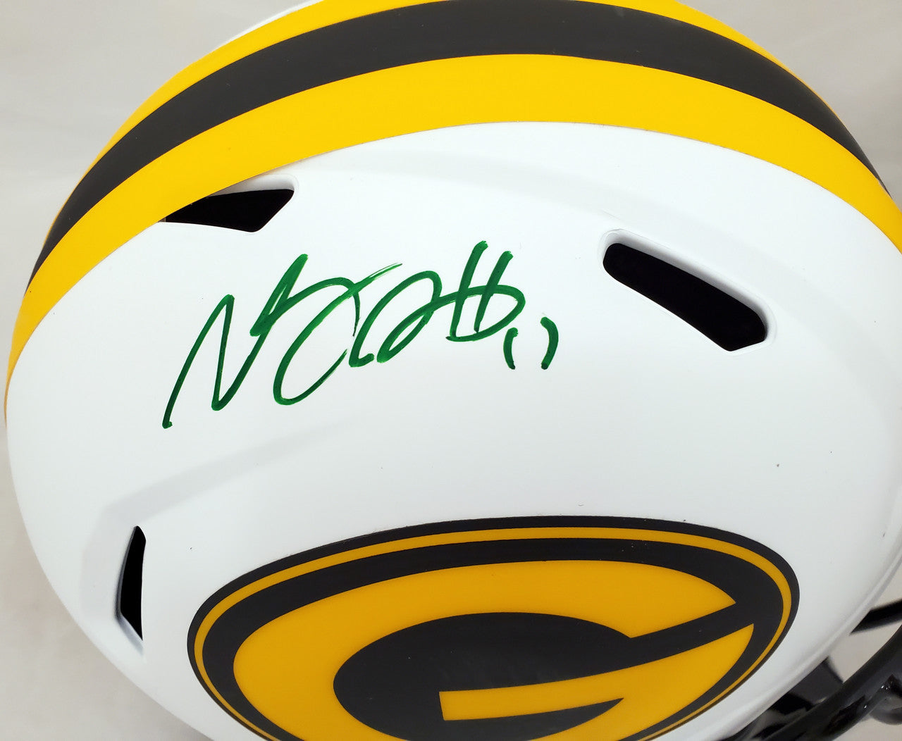 Davante Adams Autographed Green Bay Packers Lunar Eclipse White Full Size Speed Helmet Beckett BAS