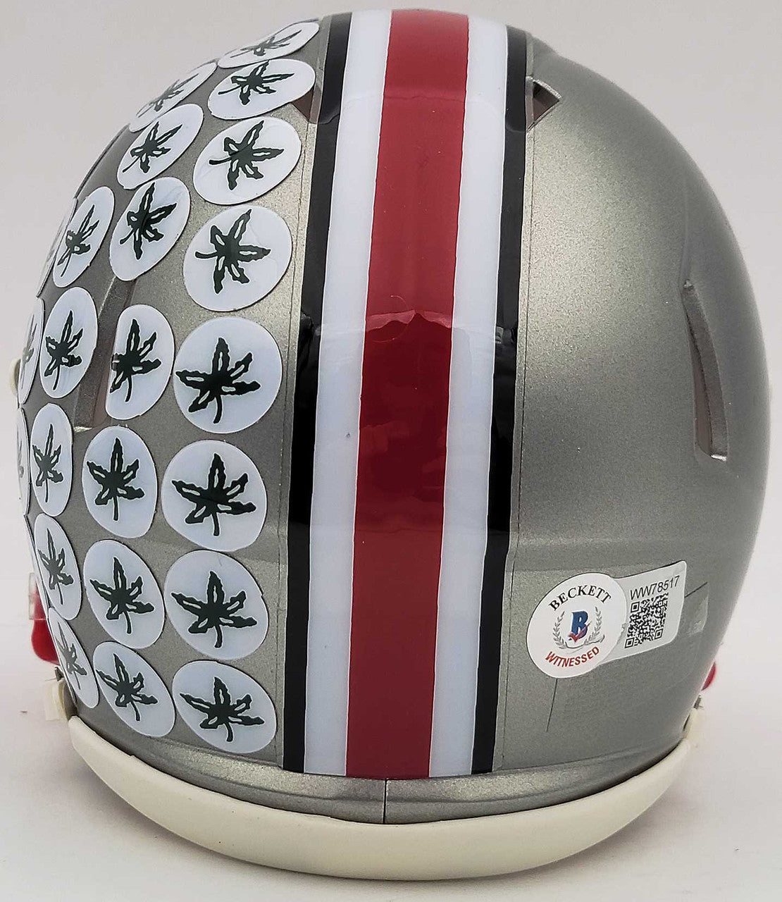 This is an Ohio State Buckeyes Flash Gray Speed Mini Helmet that has been hand signed by Denzel Burke. The Flash helmets are delicate and may have some marks or scratches on them. This item has been certified authentic by Beckett Authentication (BAS) and comes with their tamper-proof QR Code sticker that can be verified on the Beckett-authentication.com.