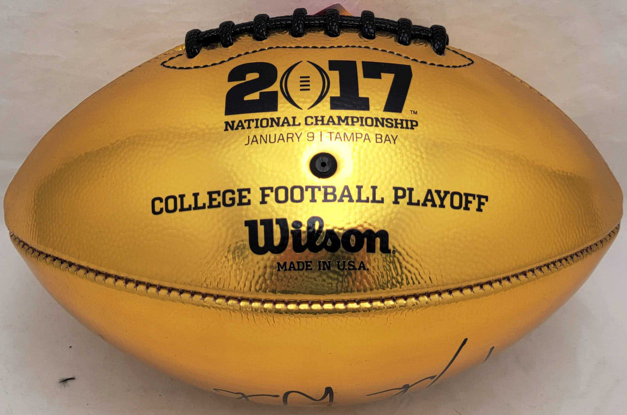 This is a 2017 College National Champions Logo Football that has been hand signed by Deshaun Watson. There is an imperfection in the signature as shown. This item has been certified authentic by Beckett Authentication (BAS) and comes with their tamper-proof sticker. Beckett Authentication has recently changed their physical certificate card policy where they no longer match their tamper-proof sticker with a physical certificate. If the item features a Beckett Authenticated QR Code, the item does NOT come with a matching certificate. The tamper-proof sticker holds the value in the authentication process while the certificate does not. A certificate can be printed on Beckett's website for the matching authentication number.