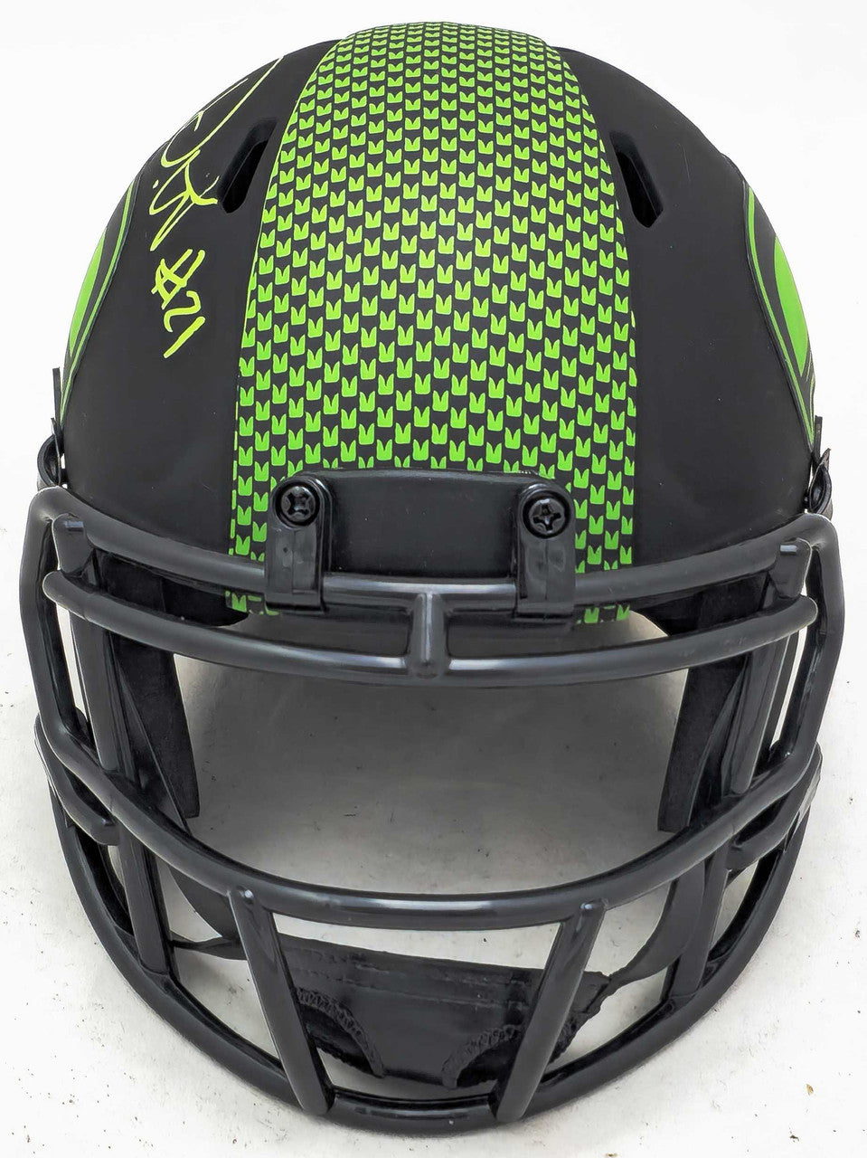 This Eclipse black Speed mini helmet has been hand signed by Devon Witherspoon, one of the NFL’s most dynamic young defensive backs and a cornerstone of Seattle’s defensive future. Known for his intensity, physical play, and game-changing presence, Witherspoon has quickly become one of the faces of the Seahawks’ next era.