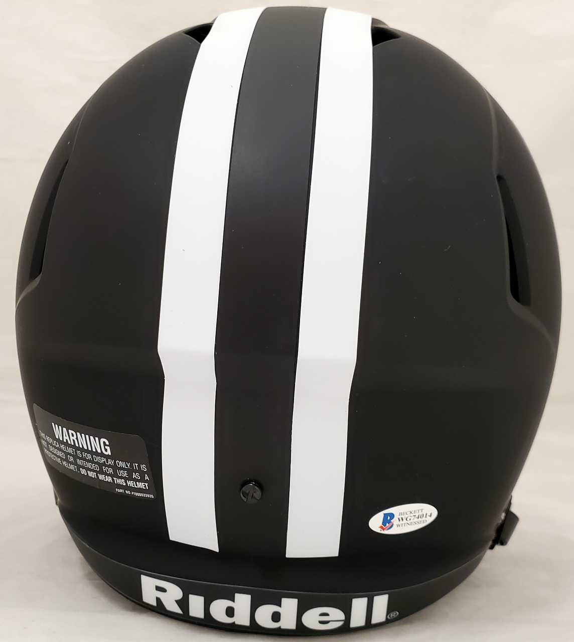 This helmet is certified authentic by Beckett Authentication Services (BAS). Under the Witness Program, a Beckett representative physically observed the signature, ensuring a genuine, verified autograph backed by a registered, tamper-proof hologram.