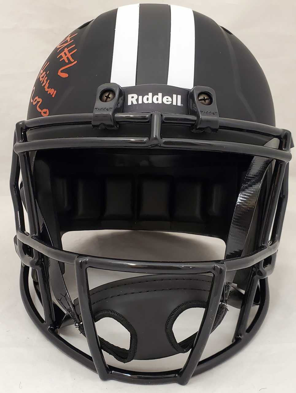 Honor one of Alabama’s greatest players with this DeVonta Smith Autographed Alabama Crimson Tide Eclipse Black Full Size Speed Replica Helmet featuring the highly coveted inscription “Heisman 2020.” DeVonta Smith became the first wide receiver in nearly 30 years to win the Heisman Trophy, cementing his legacy as one of the most electrifying stars in college football history.