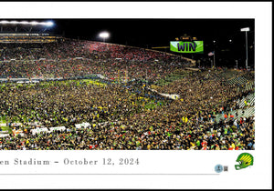 Celebrate a signature moment in Oregon Ducks history with this Dillon Gabriel Autographed 13.5x40 Panoramic Photo commemorating Oregon’s thrilling 32-31 October 12,2024 victory over the Ohio State Buckeyes. Gabriel’s leadership and playmaking on the national stage have made his signed memorabilia increasingly sought-after.