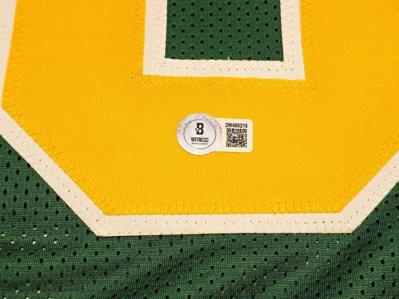 This high-quality Custom Oregon Ducks Green Jersey has been hand-signed by Dillon Gabriel with a clean, bold autograph. The signature is authenticated under the Beckett Authentication Services (BAS) Witness Program, meaning a Beckett representative personally observed the signing. A tamper-proof BAS Witness hologram is included for lifetime verification.