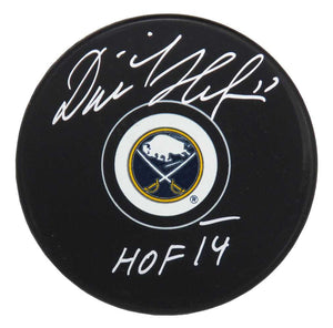 Add this premium collectible to your display: Dominik Hasek Signed Buffalo Sabres NHL Logo Hockey Puck w/HOF'14.