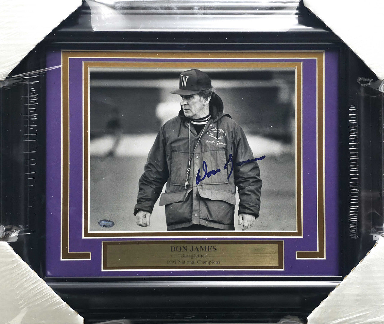 This is a Framed 8x10 Photo, approximately 15x18 with the frame, that has been hand signed by Don James. This item was signed in the presence of a Mill Creek Sports representative and comes with their serial numbered hologram and matching certificate of authenticity.