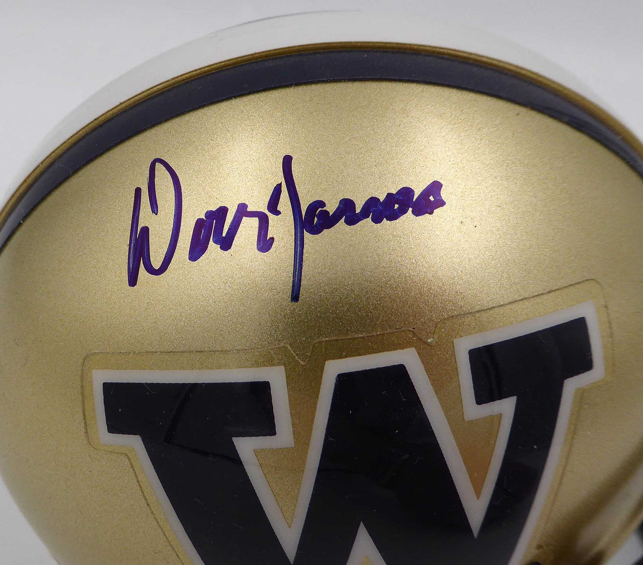This is an UW Huskies Mini Helmet that has been hand signed by Don James. This item was signed in the presence of a Mill Creek Sports representative and comes with their serial numbered hologram and matching certificate of authenticity.