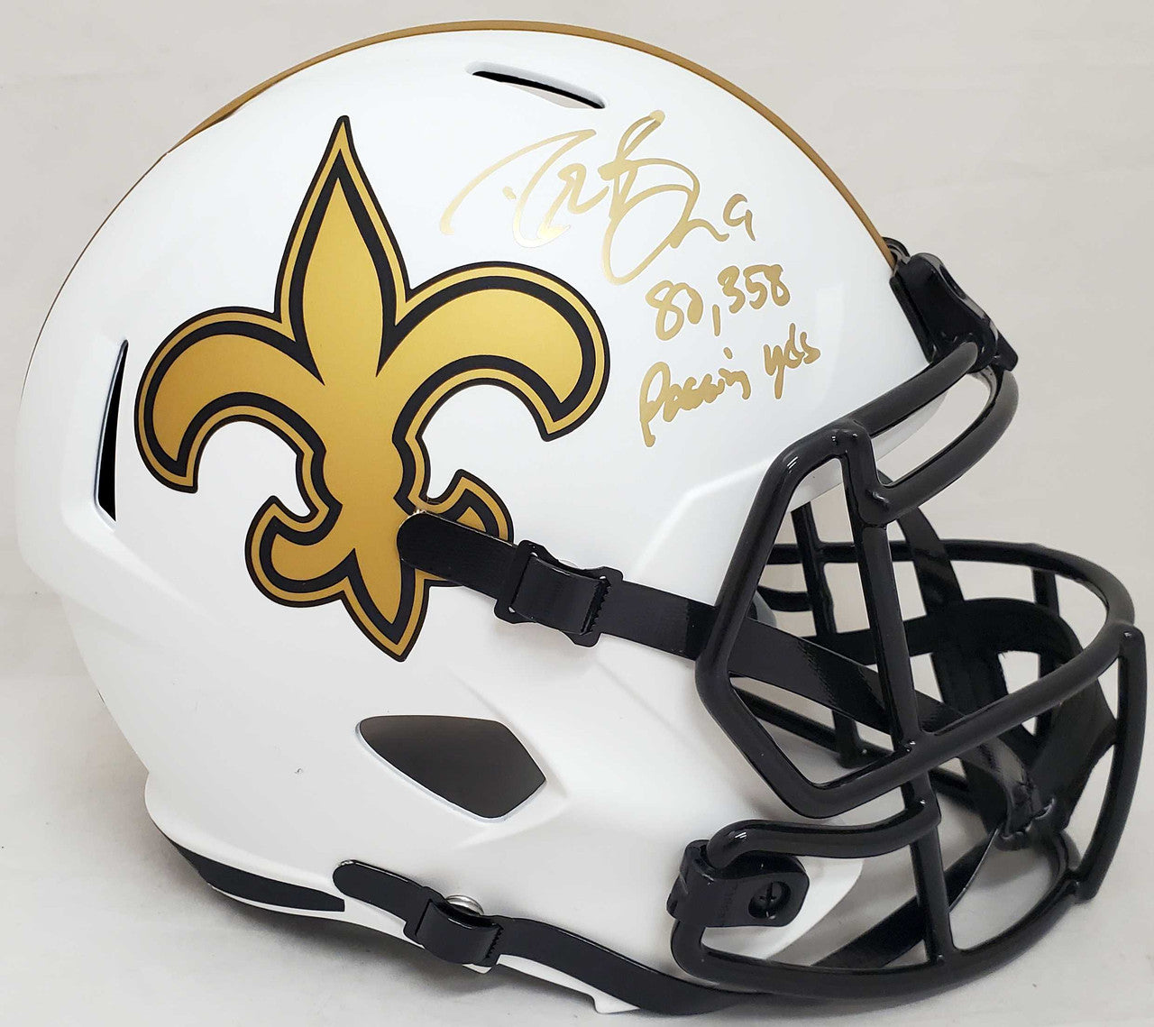 Drew Brees “80,358 Passing Yds” Signed New Orleans Saints Lunar Eclipse Full-Size Helmet – Beckett BAS Certified