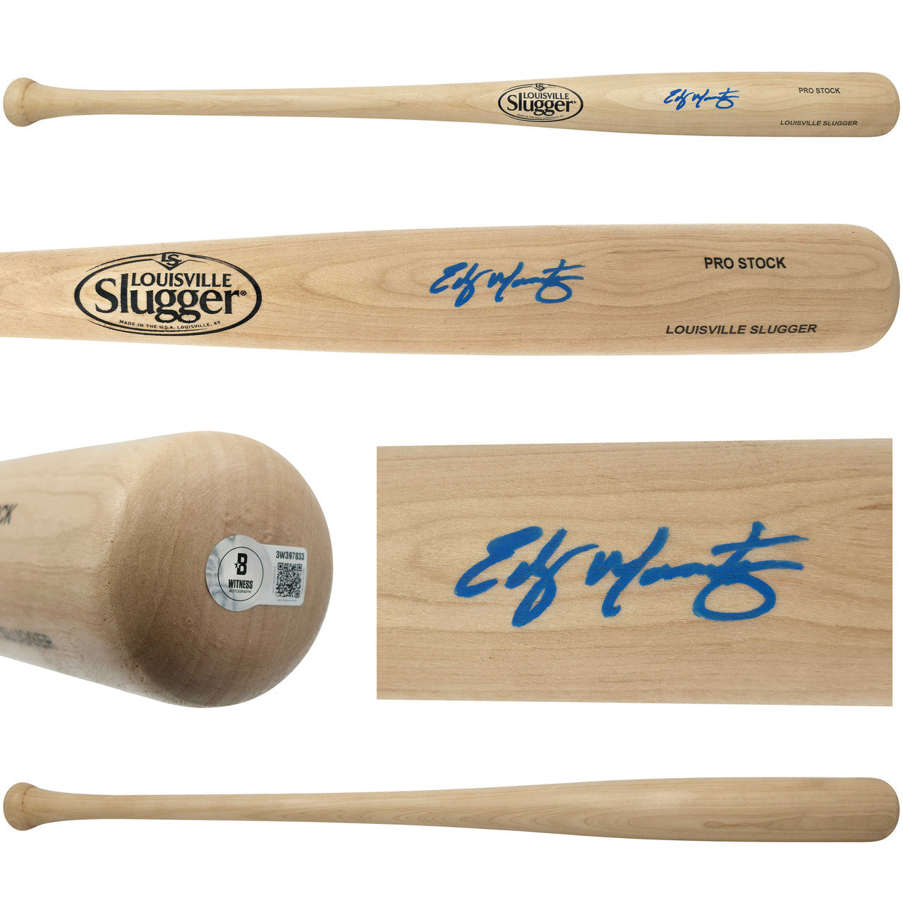 This premium Blonde Louisville Slugger Pro Stock Bat has been hand-signed by Edgar Martinez and authenticated through the Beckett BAS Witness Program. A Beckett representative personally witnessed the signing, ensuring maximum authenticity. The bat includes a tamper-proof BAS Witness hologram for lifetime verification.