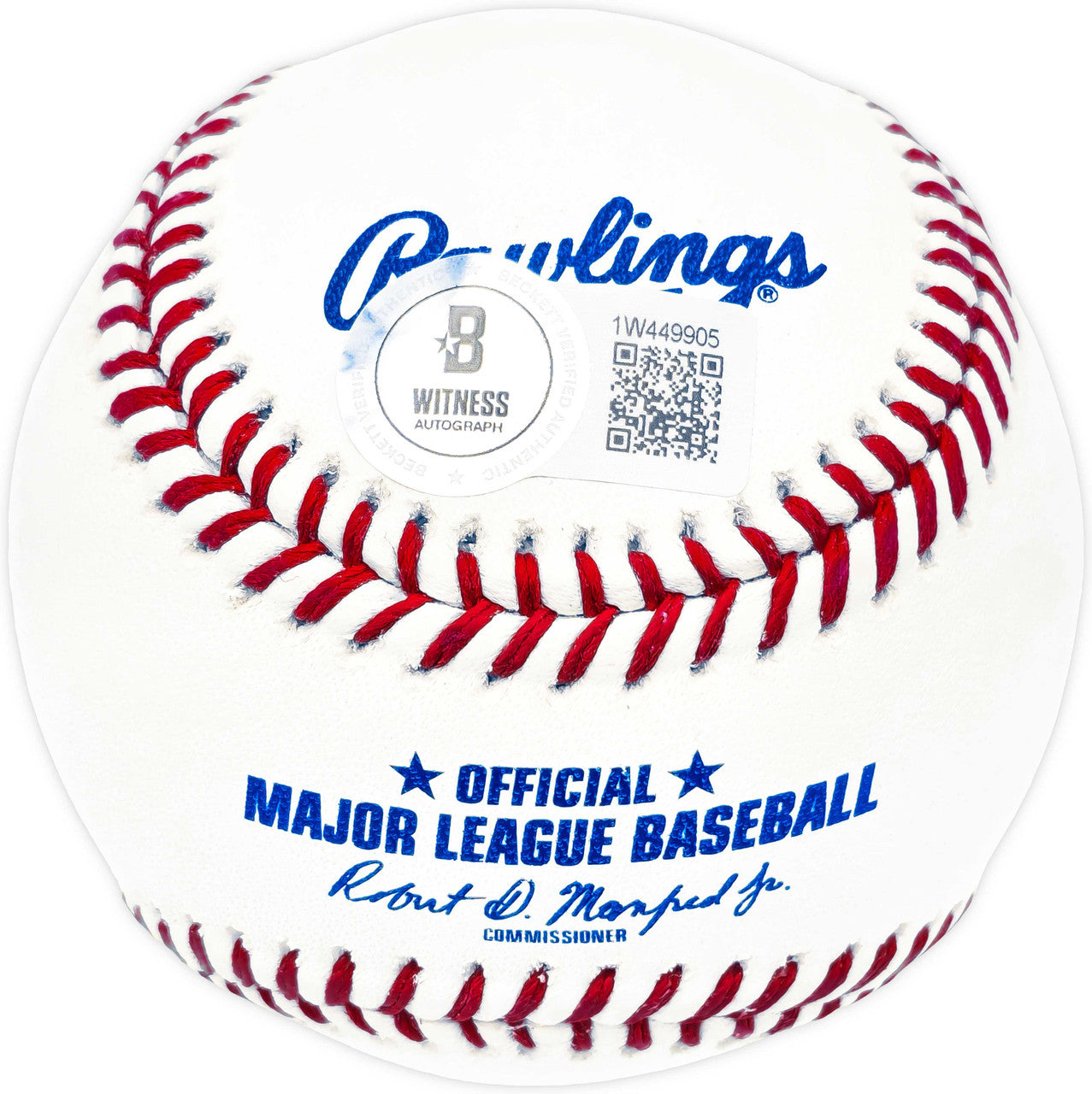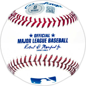The autograph has been fully witnessed and authenticated by Beckett Authentication Services (BAS Witness). The baseball includes an official BAS Witness tamper-proof hologram, providing lifetime verification of authenticity.