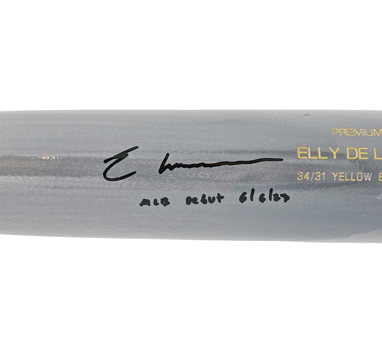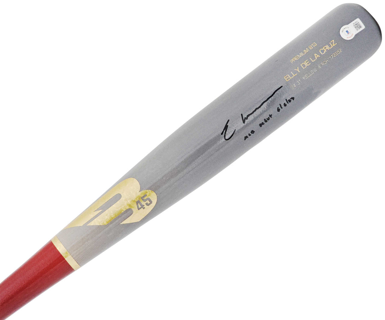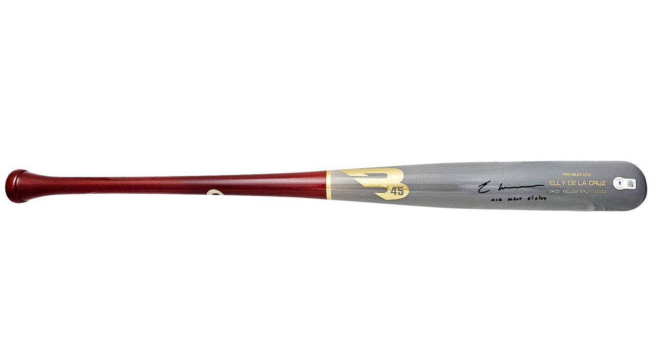 This high-quality Gray B45 Player Model Bat has been hand-signed by Elly De La Cruz and includes the debut-date inscription, making it a premium, limited-style collectible.