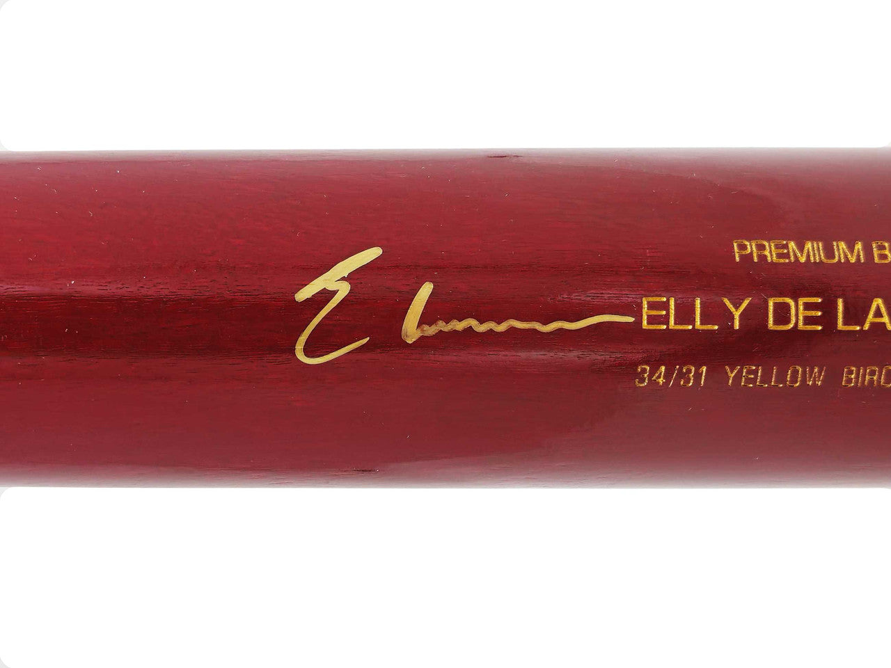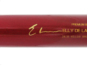 This stunning red B45 Player Model bat has been hand-signed by Elly De La Cruz in bold ink that displays beautifully on the glossy finish. The autograph is authenticated under the Beckett Authentication Services (BAS) Witness Program, meaning a Beckett representative personally witnessed the signing. A BAS tamper-proof Witness hologram is included for lifetime authenticity verification.