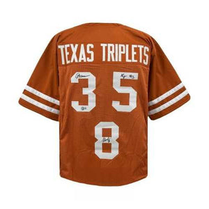 Add one of the most unique and collectible Texas Longhorns items available with this Triple-Signed Custom Orange Jersey autographed by Quinn Ewers, Bijan Robinson, and Xavier Worthy — three of the most explosive playmakers to come through Austin in the modern era.