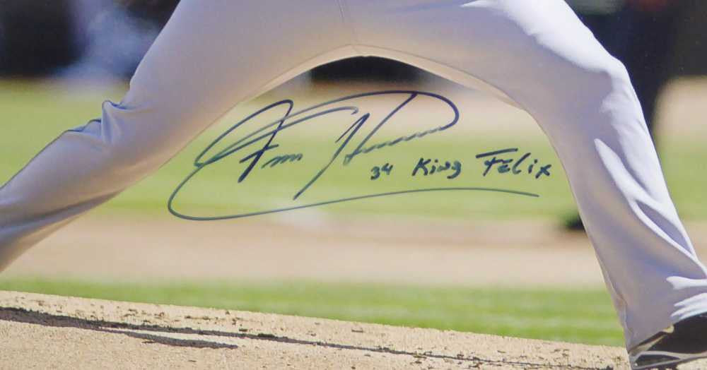 This is a framed 16x20, approximately 24x28 with the frame, that has been hand signed by Felix Hernandez. This item has been authenticated by PSA/DNA and comes with their sticker and matching certificate of authenticity.