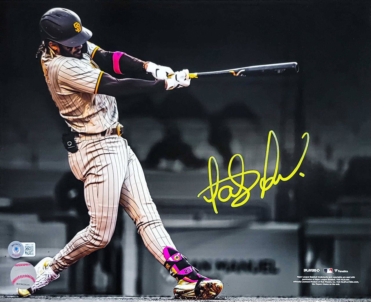 This is an 11x14 Photo that has been hand signed by Fernando Tatis Jr. This item has been certified authentic by Beckett Authentication (BAS) and comes with their tamper-proof QR Code sticker that can be verified on the Beckett-authentication.com.