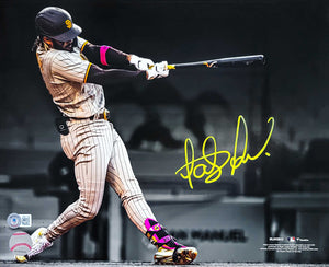 Fernando Tatis Jr. Autographed 11x14 Photo San Diego Padres Spotlight In Yellow Beckett BAS QR Stock #202109
