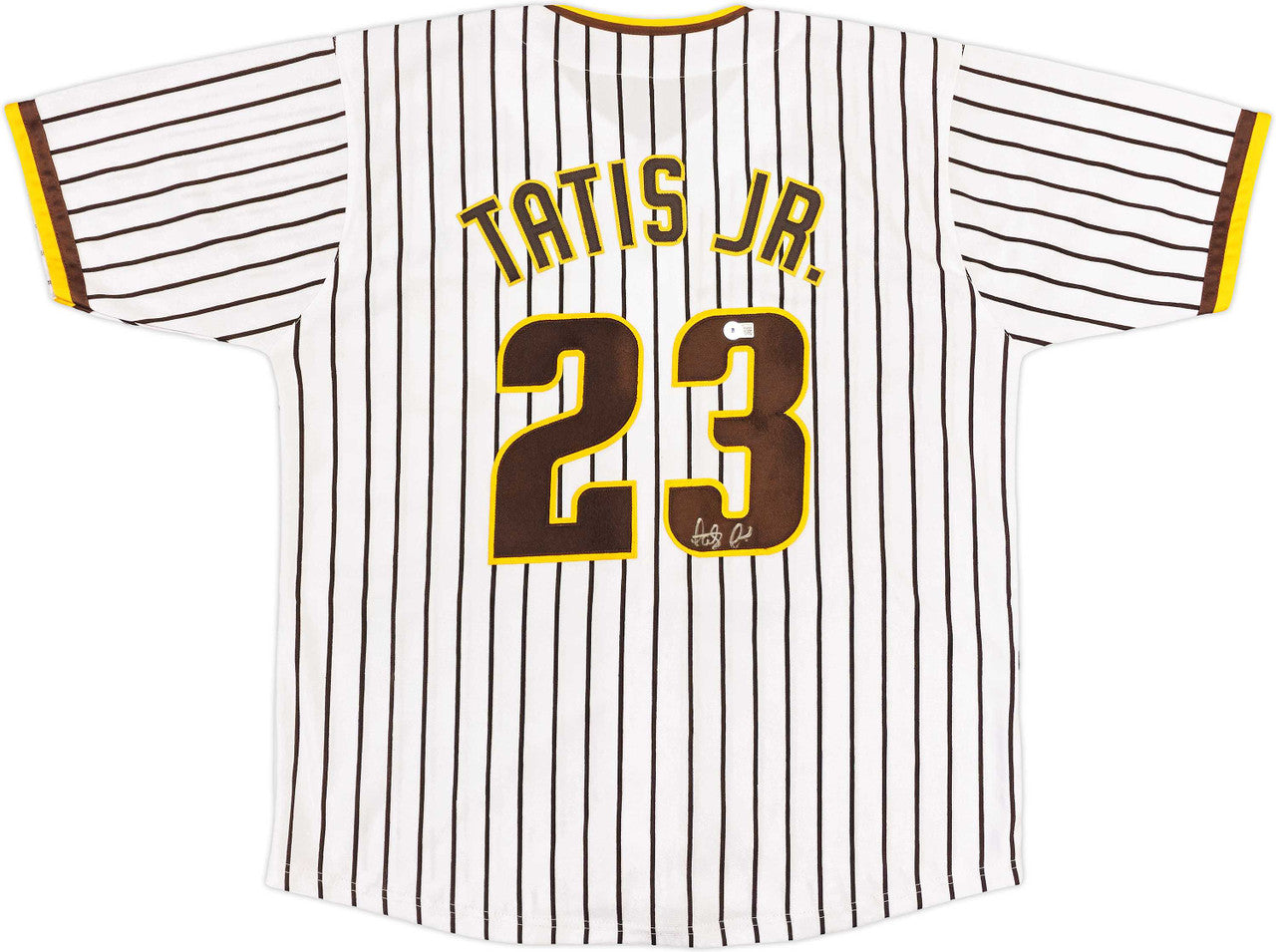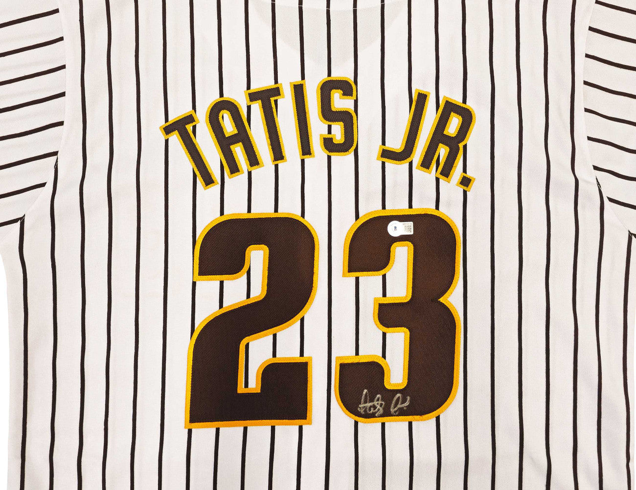 Celebrate the superstar flair of Fernando Tatis Jr. with this San Diego Padres Autographed White Pinstripe Baseball Jersey. Hand-signed by the Padres’ electrifying All-Star, this jersey showcases the classic white pinstripe design that has become synonymous with the team’s modern era. Authenticated by Beckett Authentication Services (BAS) Witness, this piece includes a tamper-proof hologram and matching Certificate of Authenticity — ensuring your collectible is 100% genuine.