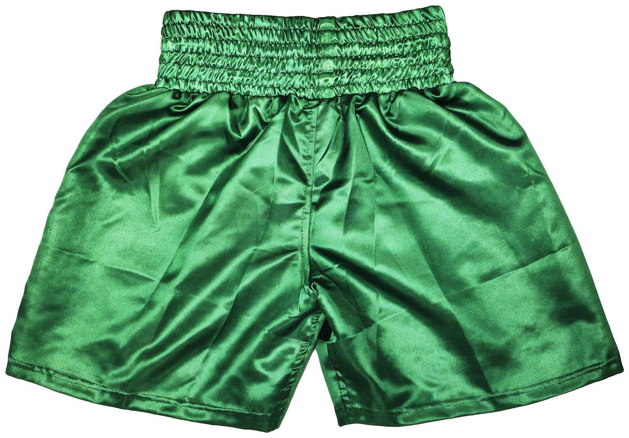- Vibrant green boxing trunks with stitched details and premium finish