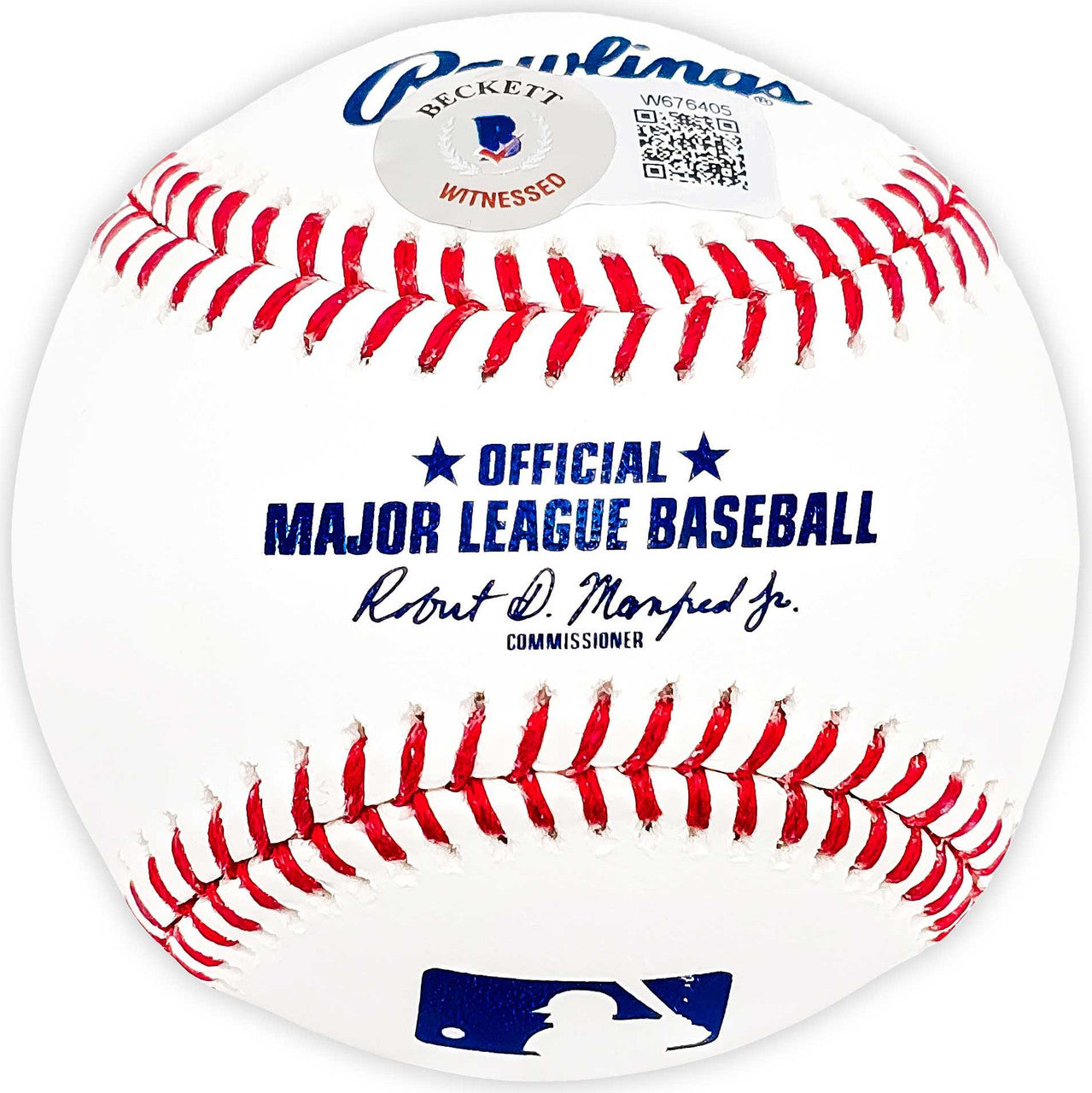 This is an Official MLB Baseball that has been hand signed by Francisco Alvarez. This item was inscribed "1st MLB HR 10.4.22." This item has been witnessed and certified authentic by Beckett Authentication (BAS) and comes with their tamper-proof witness sticker. Beckett Authentication has recently changed their physical certificate card policy where they no longer match their tamper-proof sticker with a physical certificate. A certificate can be printed on Beckett's website for the matching authentication number.