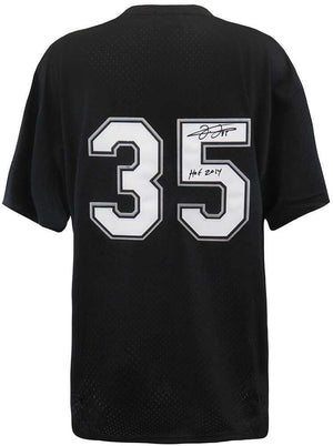 Frank Thomas signed Chicago White Sox black Mitchell & Ness batting practice baseball jersey with 'HOF 2014' inscription. Item comes with a Schwartz Sports Memorabilia tamper-proof numbered hologram and Certificate of Authenticity which can be verified online.